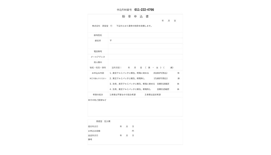 粉骨申込書