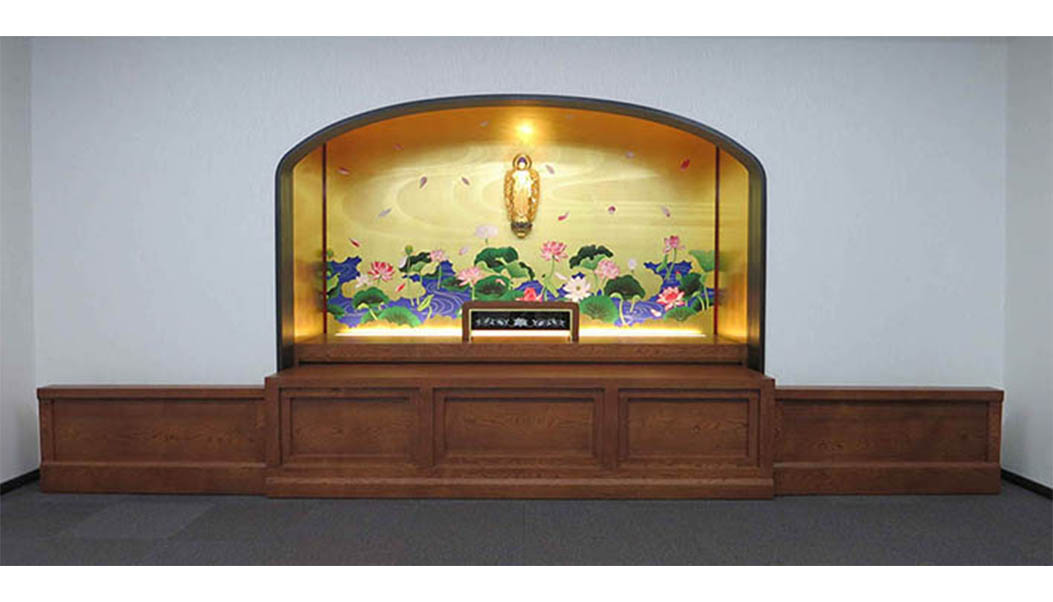 弟子屈町 本照寺 様(浄土真宗本願寺派)広間御内仏制作 御内仏制作寸法幅 2550㎜(両袖を開いた幅5000㎜)×高さ 2050㎜×奥行 900㎜用途に合わせて3通りのレイアウトが可能です 前のページに戻る