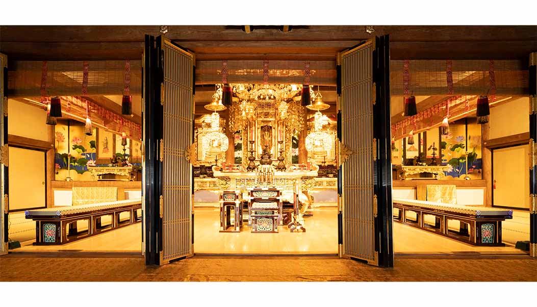帯広市 光心寺 様(浄土真宗本願寺派)御本堂改修工事 天井・金紙絵張り、御仏具新調 絵天井:金箔紙に手描き絵 2尺×2尺 419枚 制作 ベトナム 祖師・御代前・余間:金箔紙に手描き絵 制作 ベトナム御仏具:御内陣椅子・登高座 新調 前のページに戻る