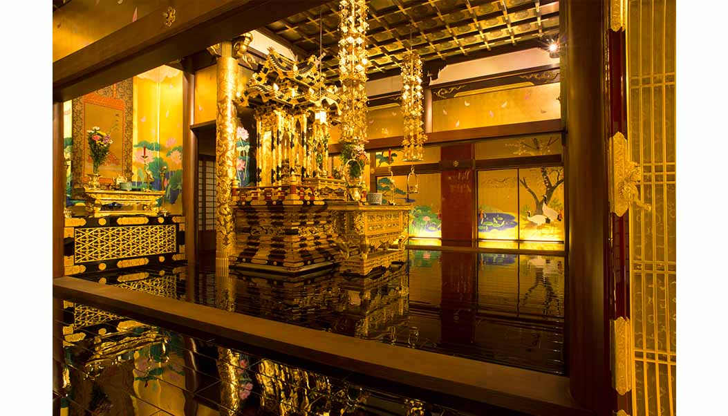 御内陣改修工事 床・金紙張り・余間柱・襖・巻障子