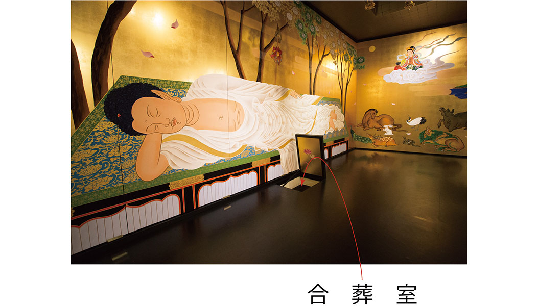 旭川市 天寧寺 様(浄土真宗本願寺派)永代納骨棚・合葬庫制作改修工事 間口 3.5間×奥行 1.2間既存の大広間に納骨棚を設置しその手前に涅槃図を描いた扉を設置涅槃図を描いた扉の奥に7寸箱を176体納骨できます床下基礎部分を防水加工し、合葬室にいたしました 前のページに戻る
